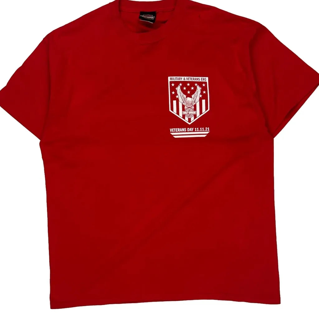 Veterans Day 11.11.21 Harley Davidson Graphic T-Shirt - XL Red Cotton