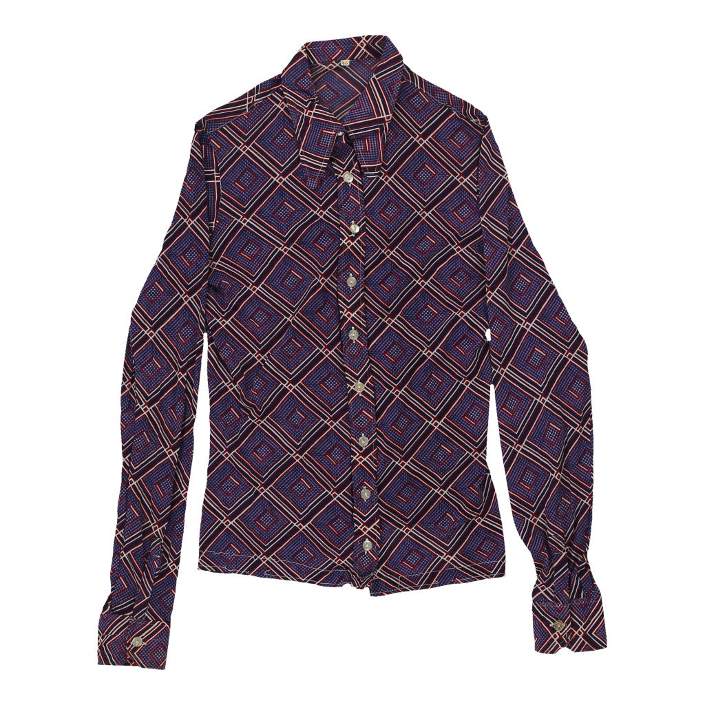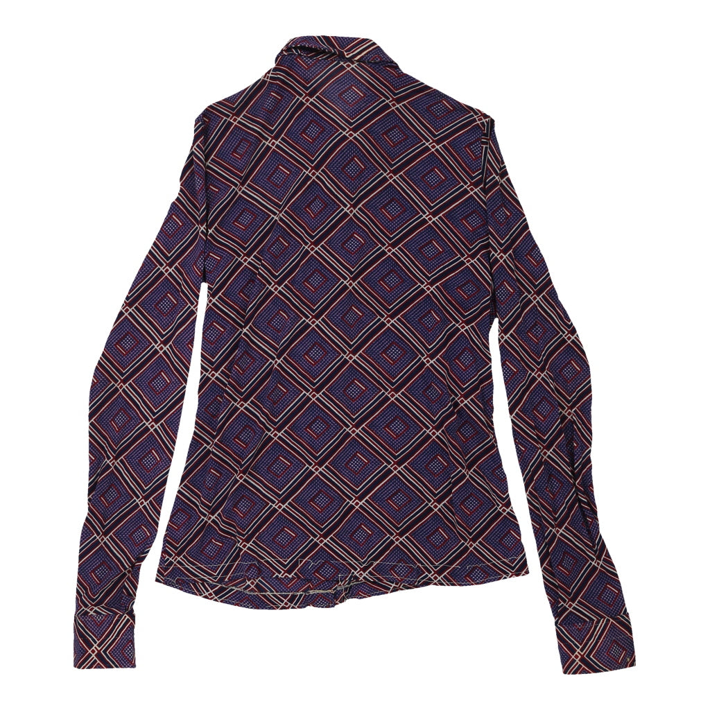 1970's Unbranded Patterned Shirt - XS Purple Polyester Blend
