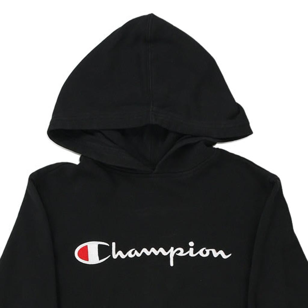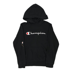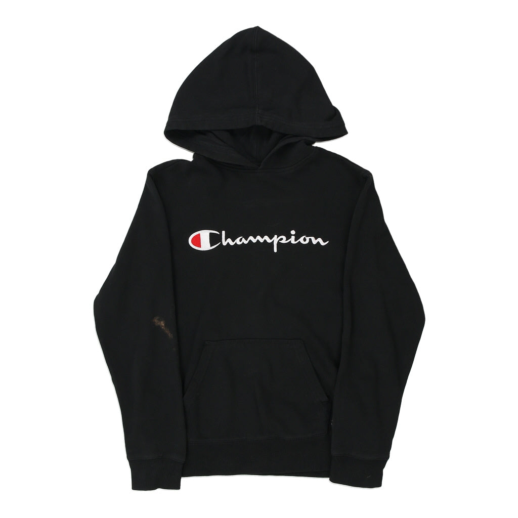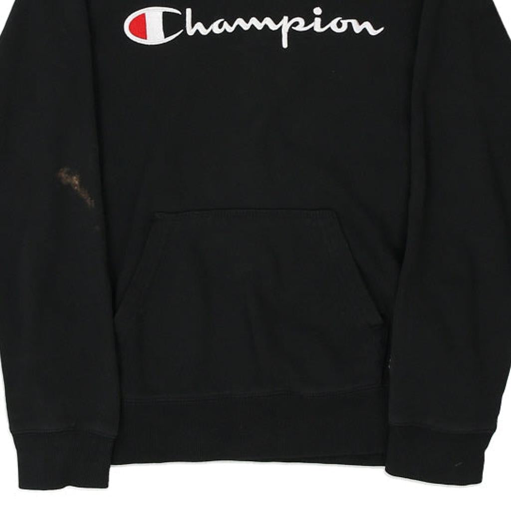 Age 11 Champion Spellout Hoodie - Medium Black Cotton Blend
