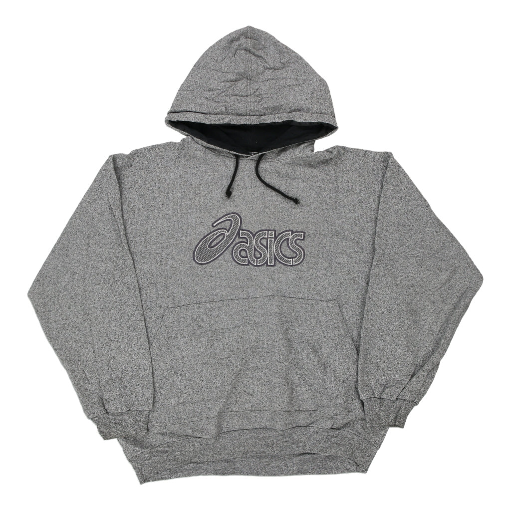 Asics Spellout Hoodie - Large Grey Cotton