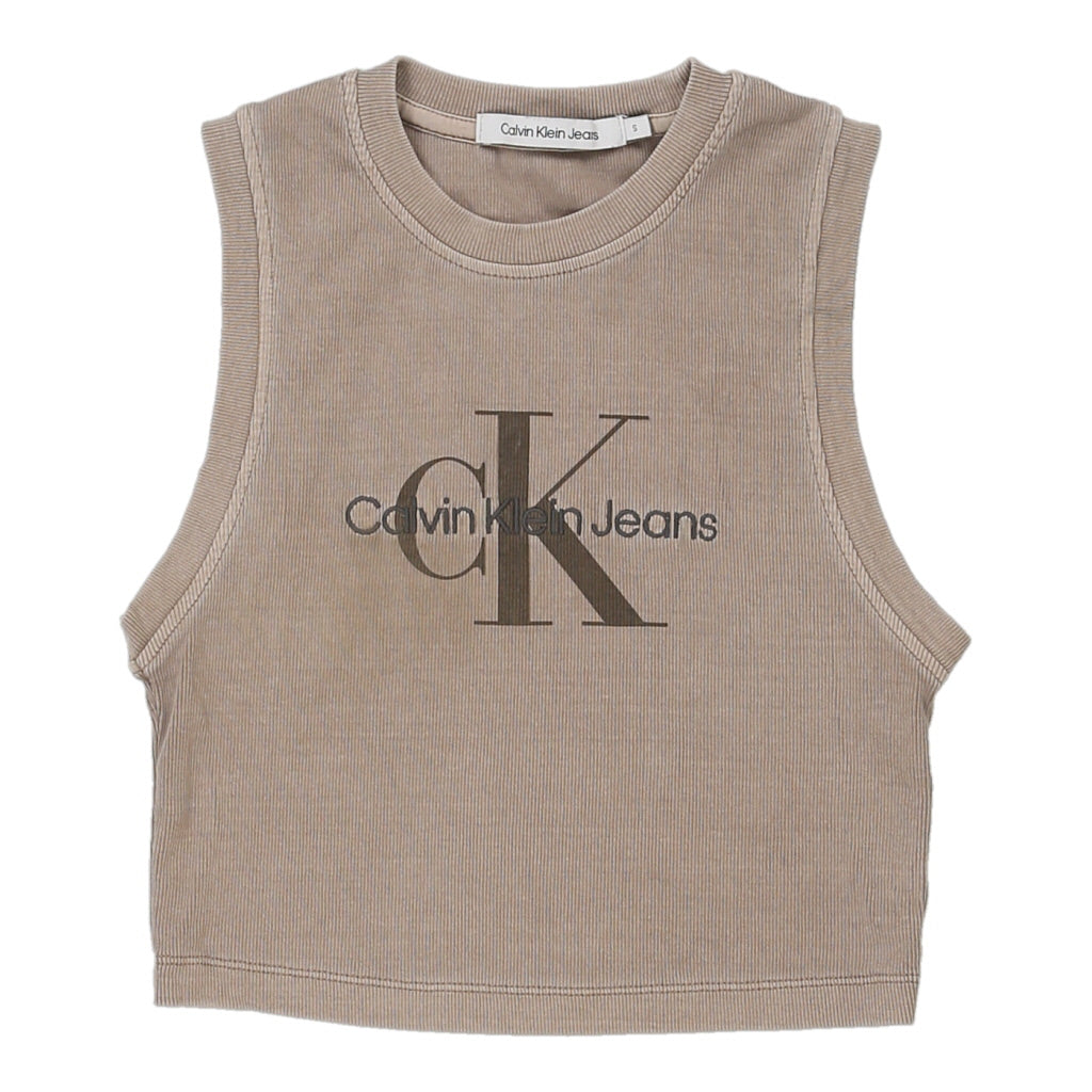 Calvin Klein Jeans Spellout Top - Small Beige Cotton