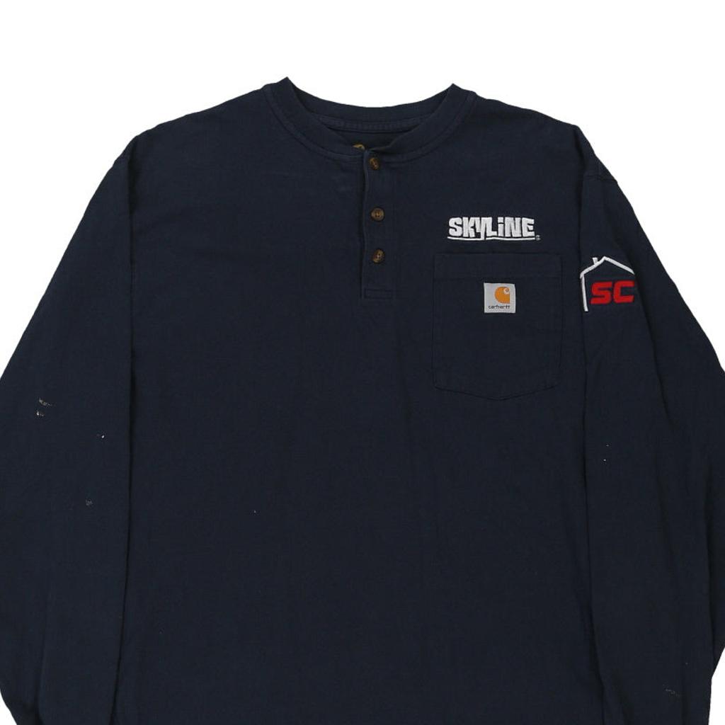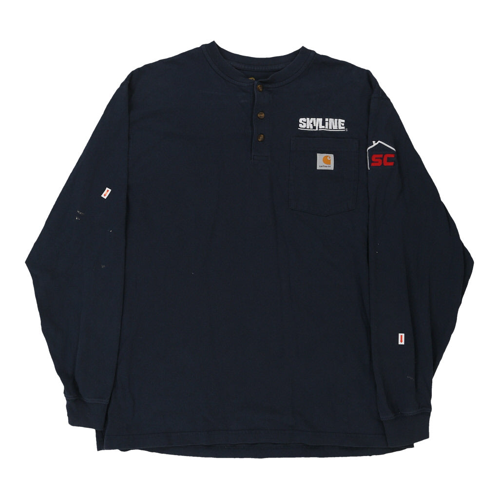 Carhartt Long Sleeve T-Shirt - Large Navy Cotton