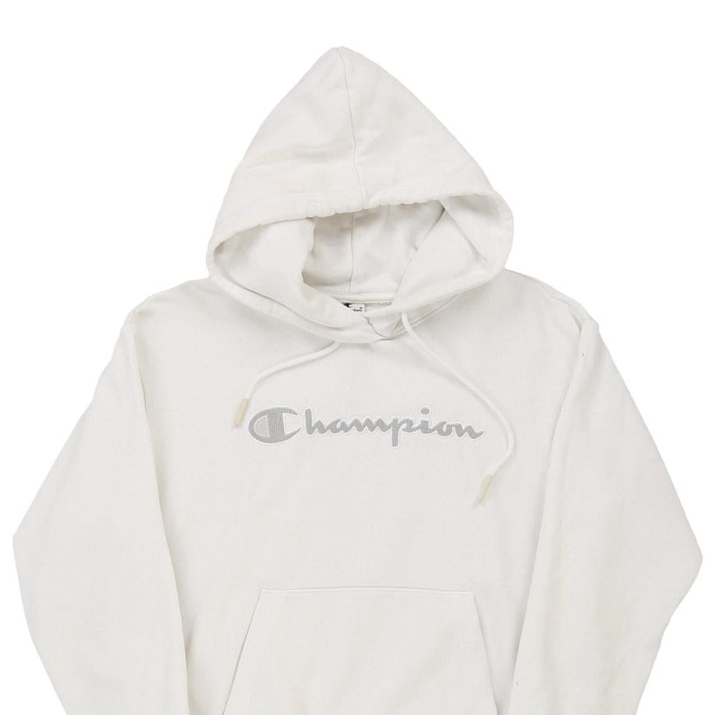 Champion Spellout Hoodie - XS White Cotton Blend
