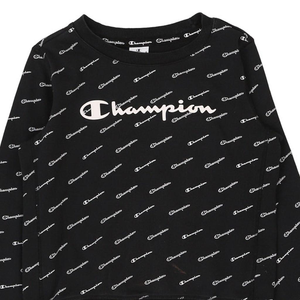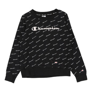 Champion Spellout Sweatshirt - Medium Black Cotton