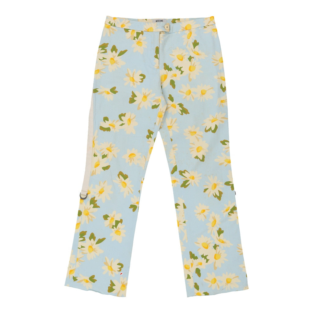 Cheap & Chic Moschino Floral Trousers - 30W UK 8 Blue Cotton
