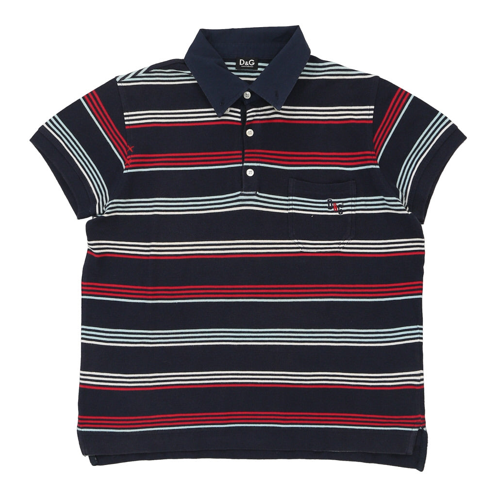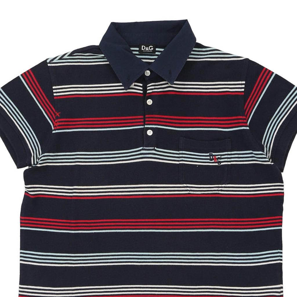 Dolce & Gabbana Striped Polo Shirt - Small Navy Cotton