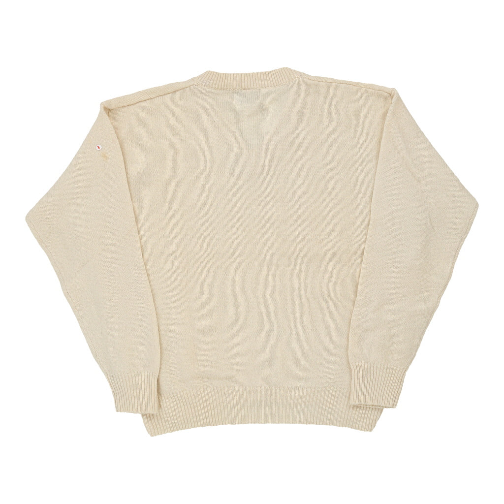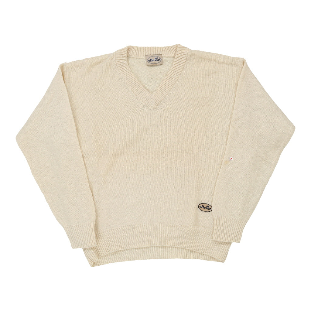 Ellesse V-neck Jumper - Large Beige Virgin Wool