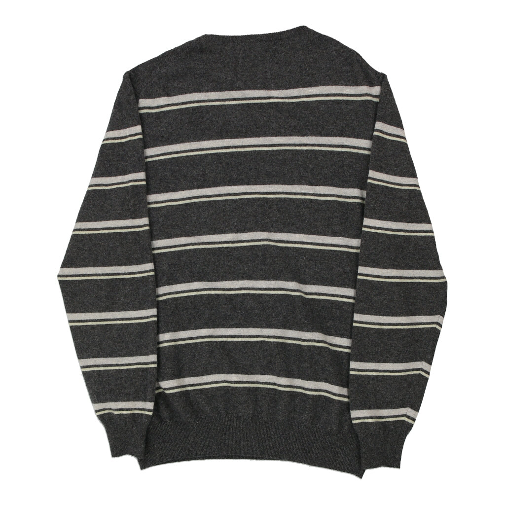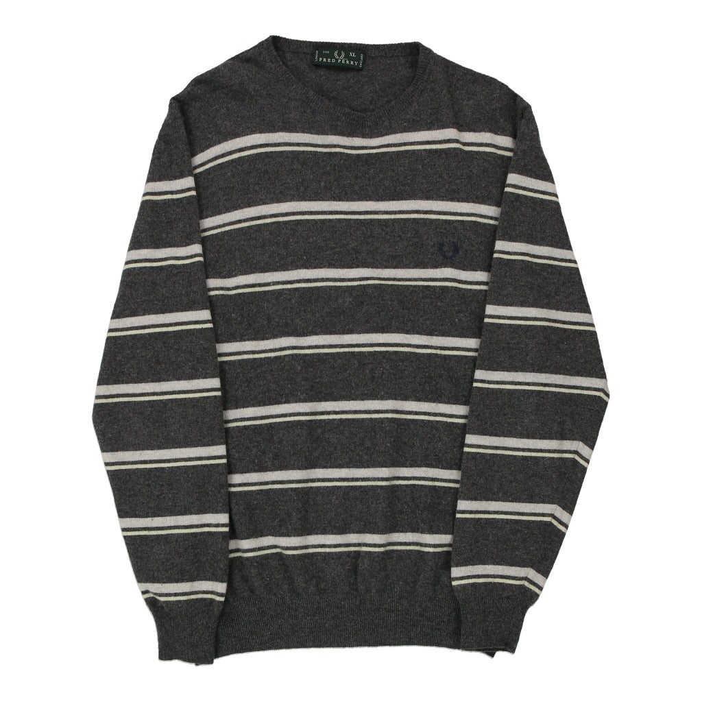 Fred Perry Striped Jumper - XL Grey Merino Wool Blend