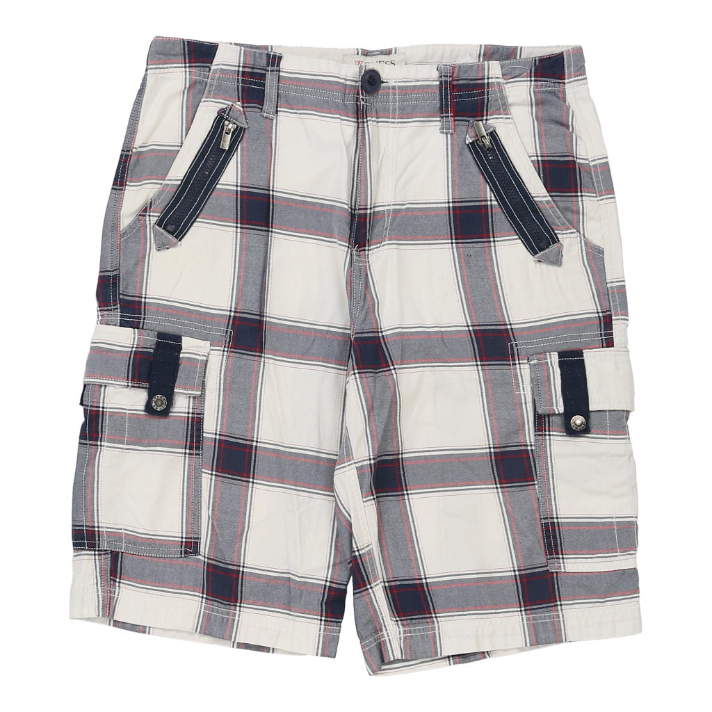 Guess Checked Cargo Shorts - 34W 12L White Cotton
