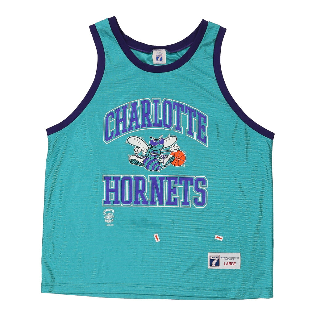 Made in USA Charlotte Hornets Logo 7 NBA Jersey - Large Teal Polyester