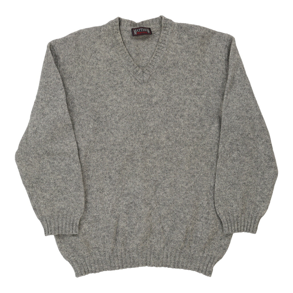 Matthew Sporting V-neck Jumper - XL Grey Wool