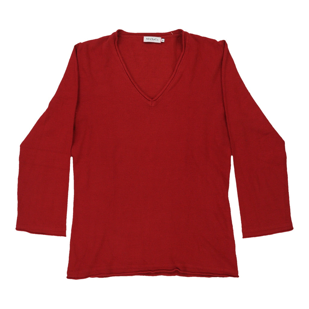 Max & Co V-neck Long Sleeve Top - Medium Red Cotton