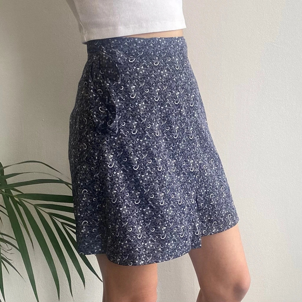 Max & Co Floral Wrap Skirt - 25W UK 6 Navy Polyester