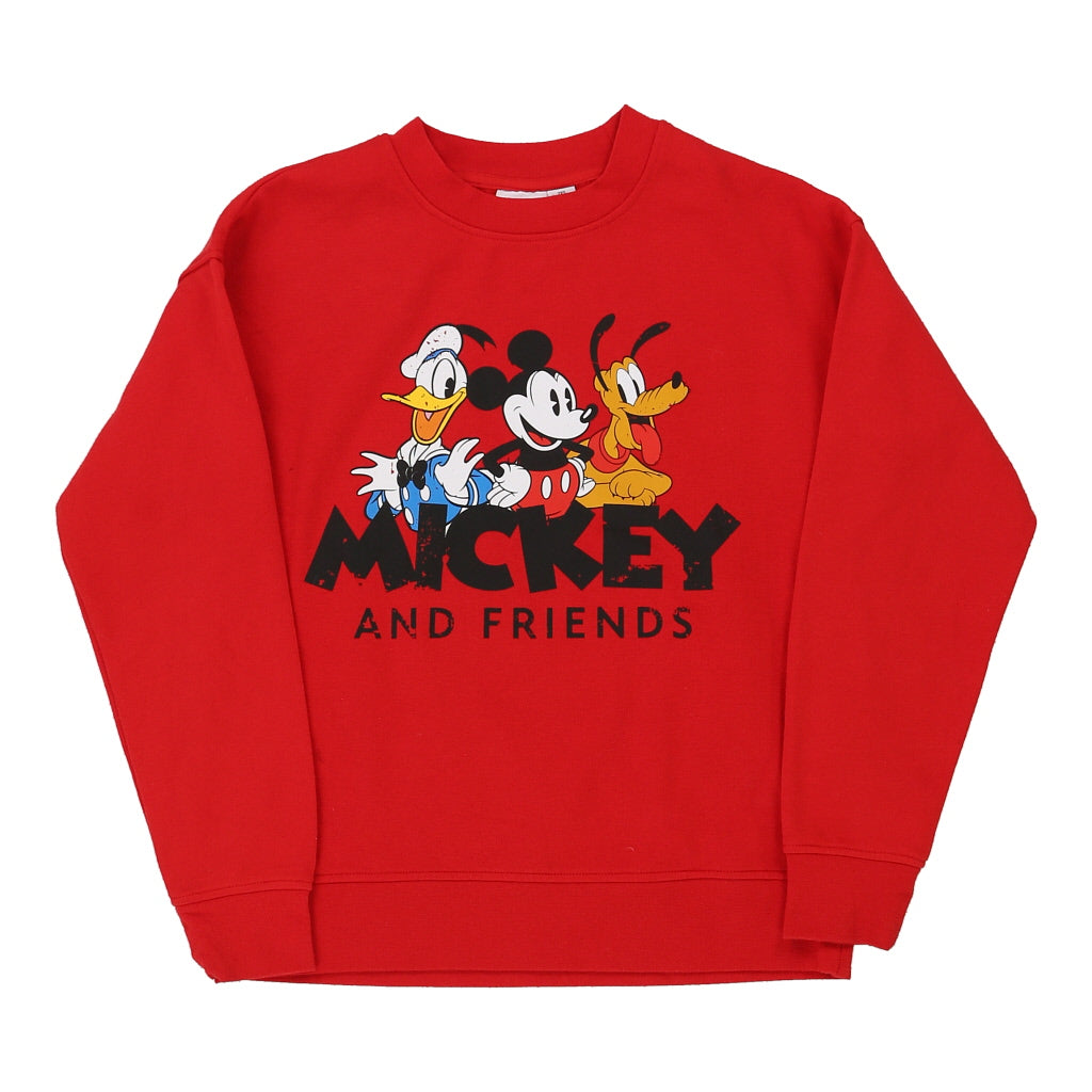 Mickey Cartoon Sweatshirt - 2XS Red Cotton Blend