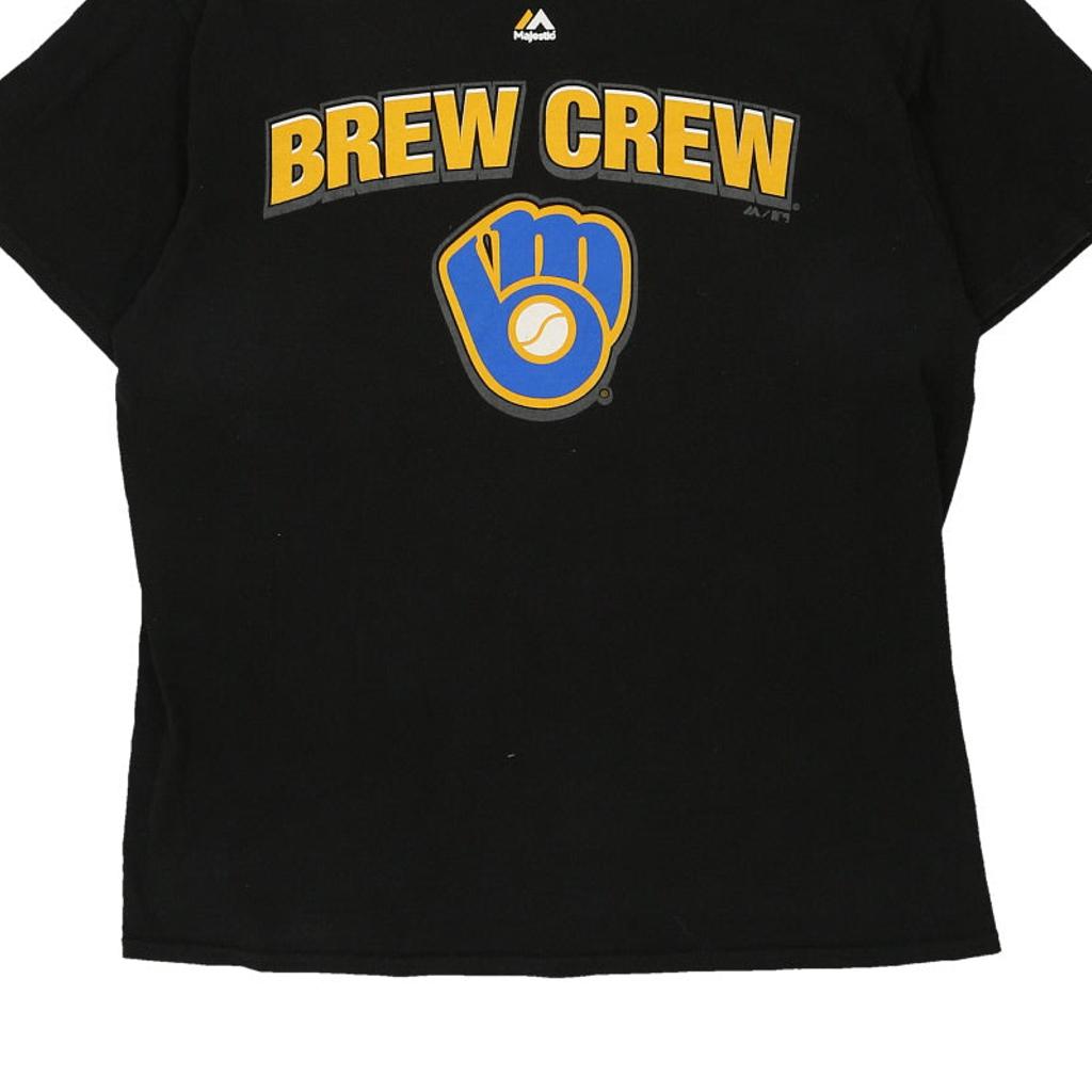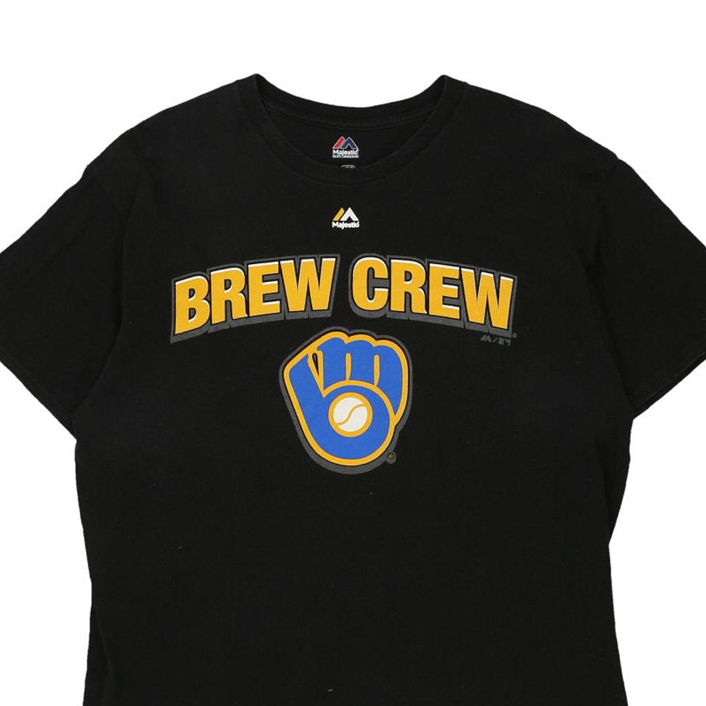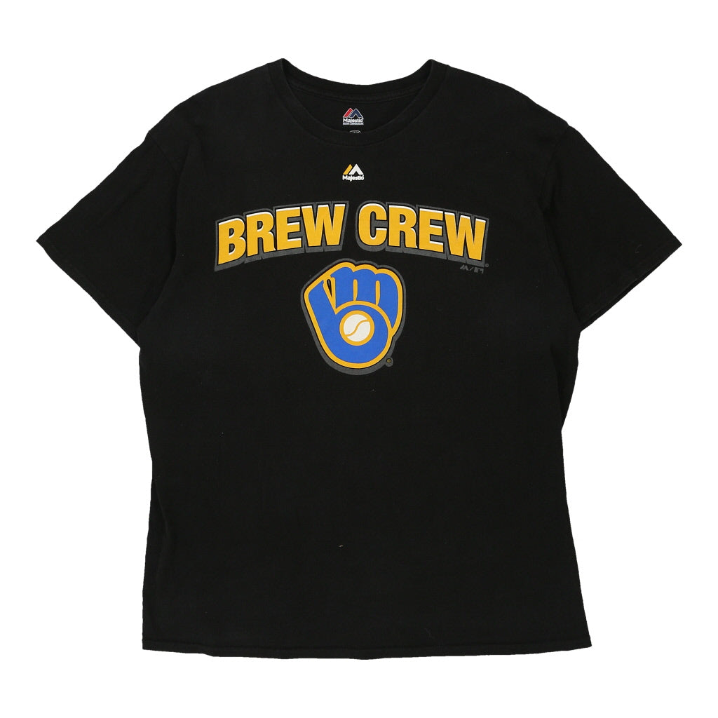 Milwaukee Brewers Majestic MLB T-Shirt - Large Black Cotton