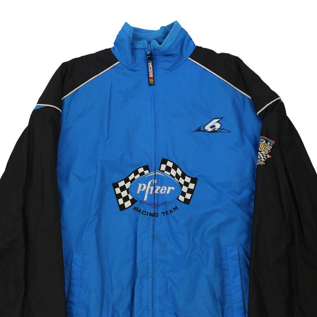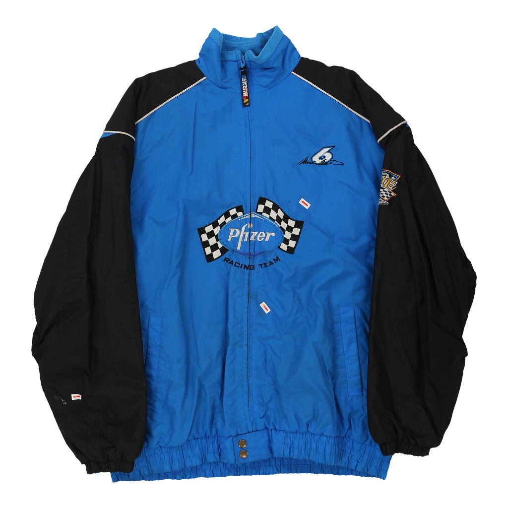Pfizer Racing Team Checkered Flag Nascar Jacket - Large Blue Nylon
