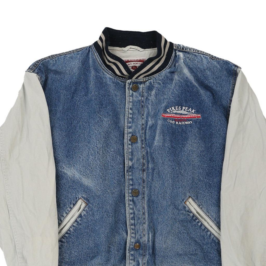 Pikes Peak Time Square Varsity Jacket - Large Blue Cotton Blend