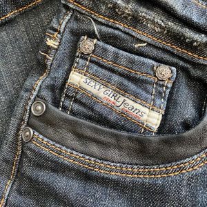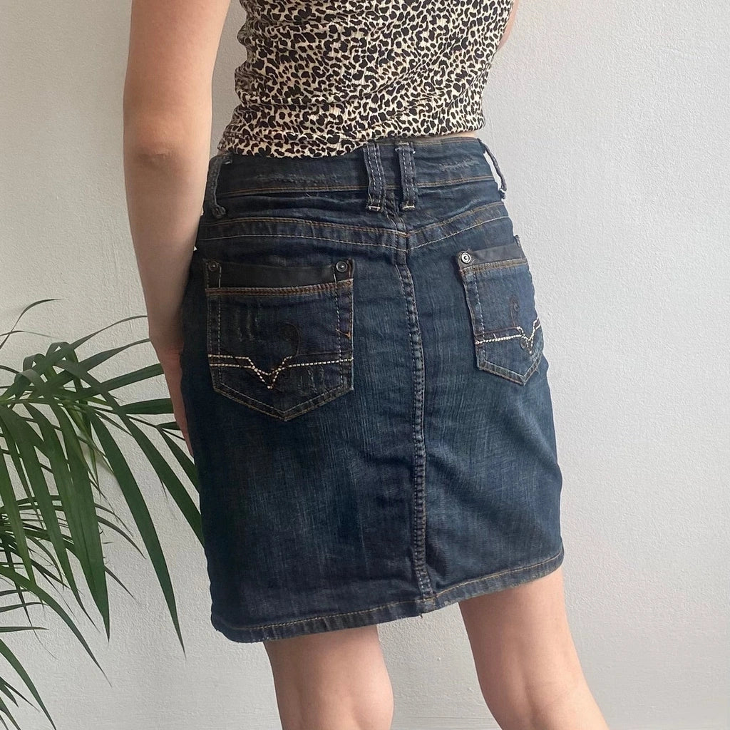 Vintage Sexy Girl Jeans dark wash denim skirt, fits a UK size 8.