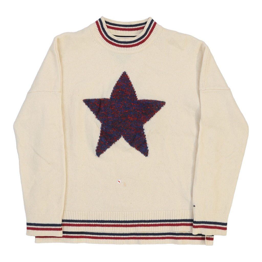 Tommy Hilfiger Graphic Jumper - Medium White Wool Blend