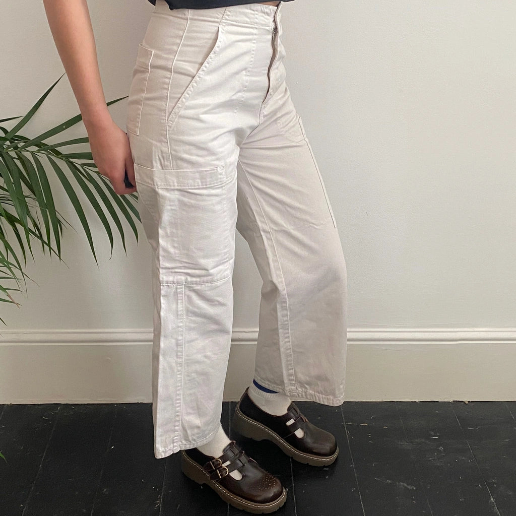 Vintage Unbranded cream cargo trousers, fit a UK size 8 - high waisted with a 26" waist.