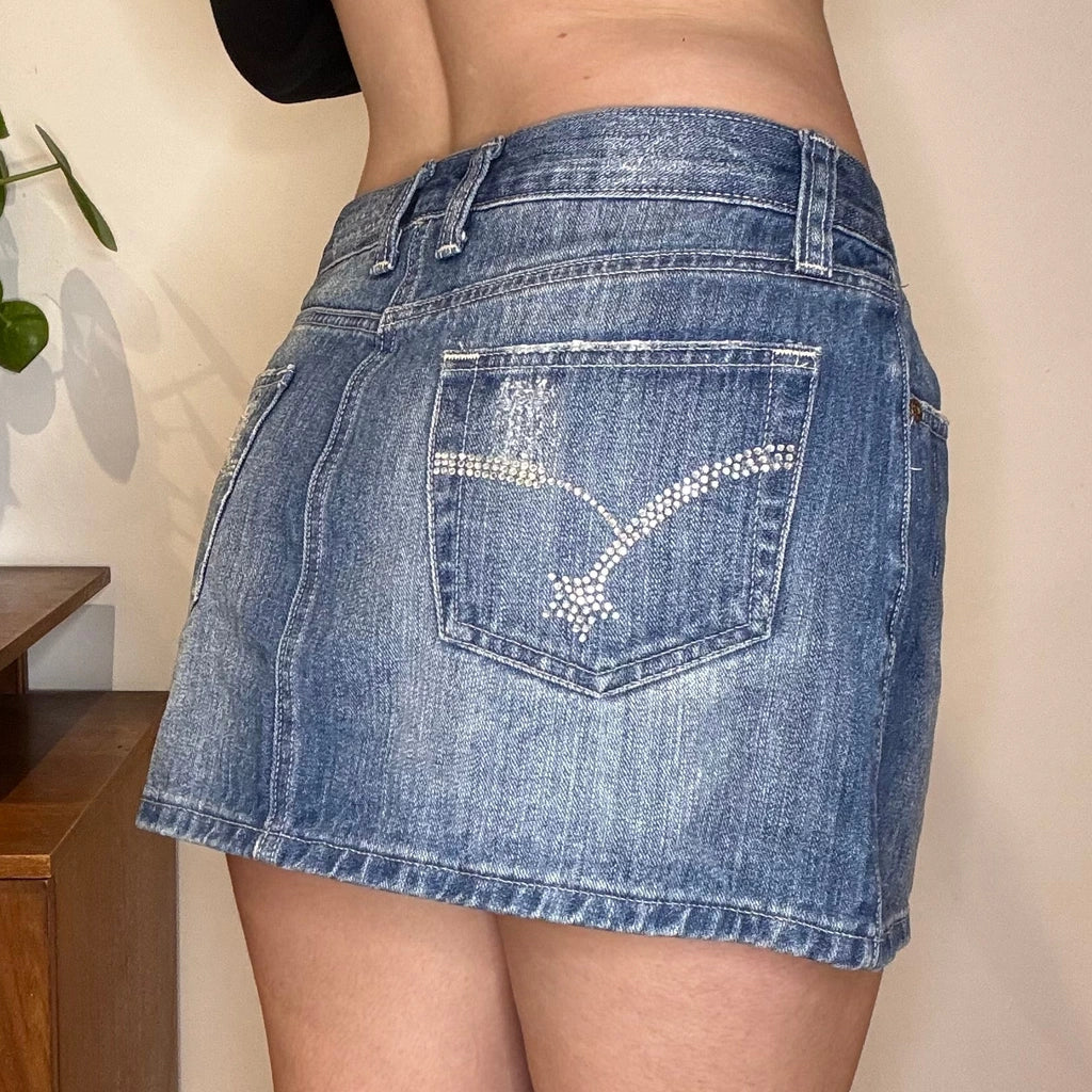 Unbranded Mini Denim Skirt - 32W UK 12 Blue Cotton