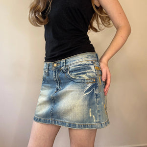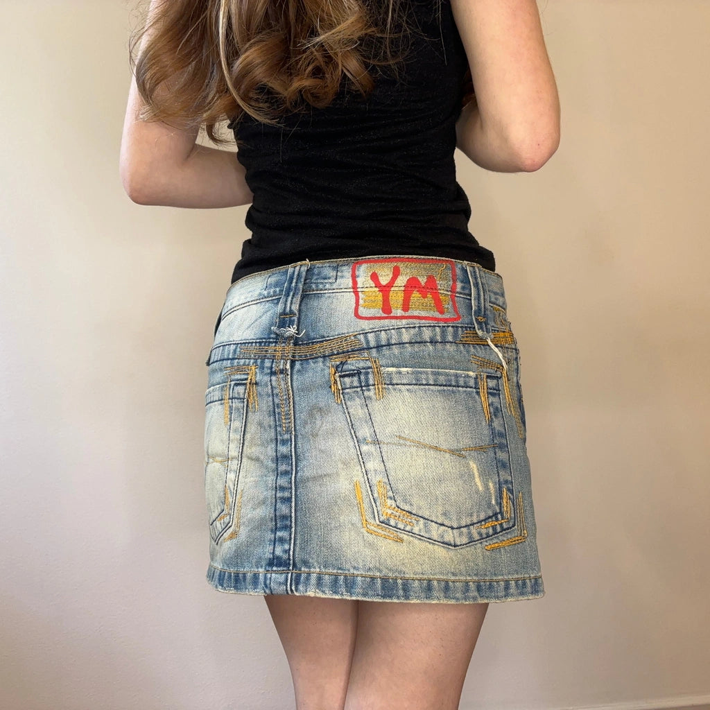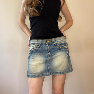 Yes Miss Mini Denim Skirt - 30W UK 10 Blue Cotton