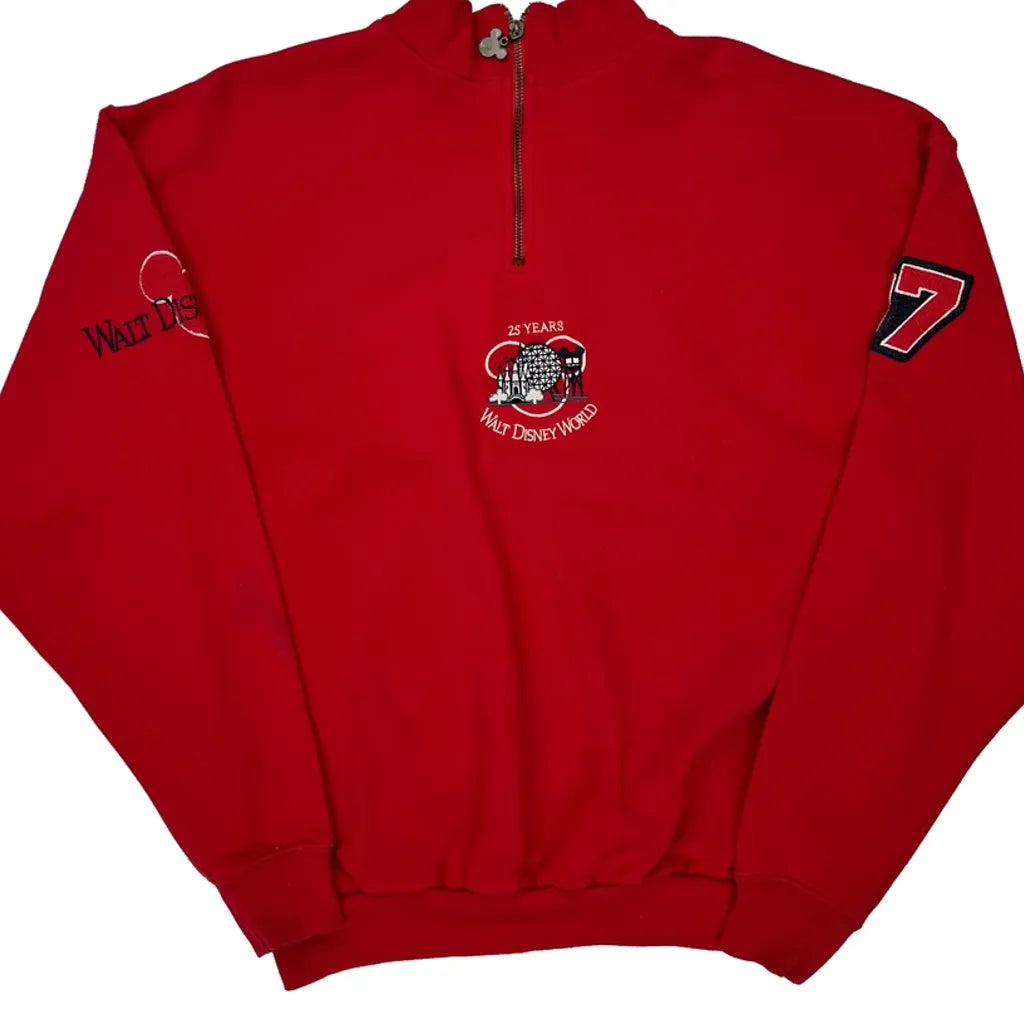 Walt Disney World 25 Years Mickey Inc Graphic Long Sleeve T-Shirt - Medium Red Cotton