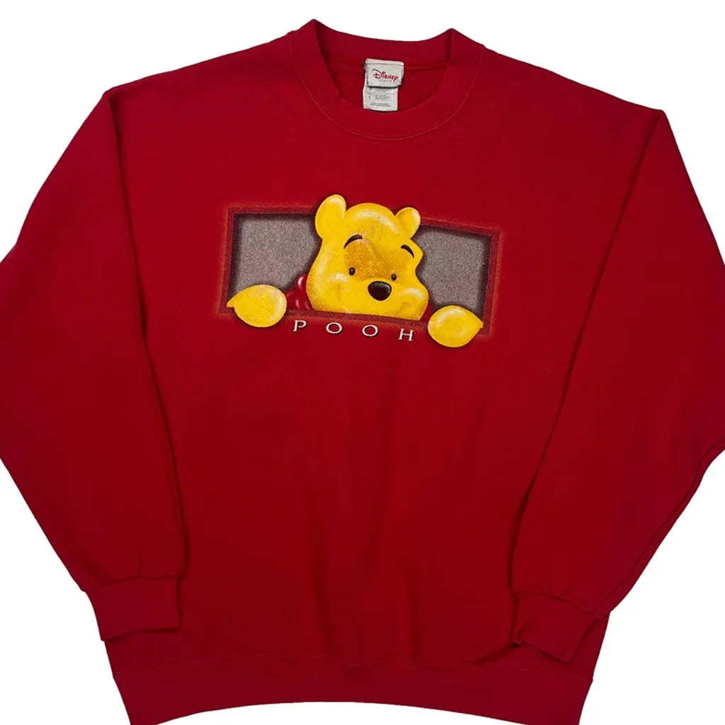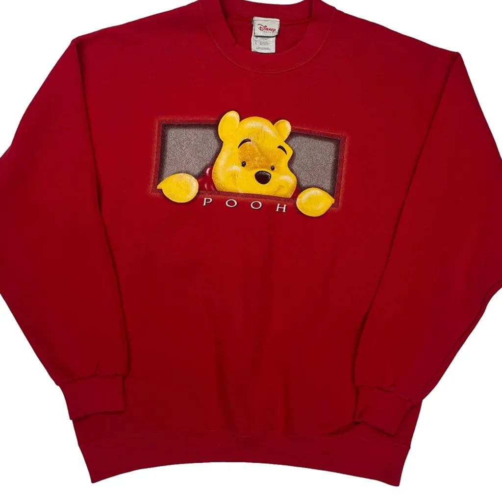 Winnie The Pooh Disney Cartoon Sweatshirt - Large Red Cotton Blend
