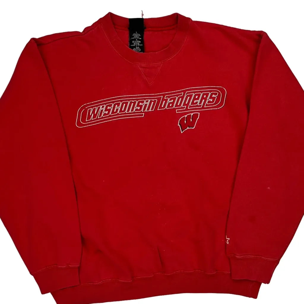 Wisconsin Badgers Starter College Sweatshirt - Large Red Cotton Blend