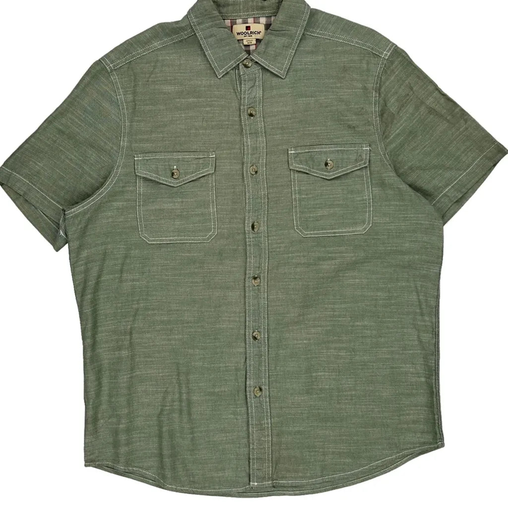 Woolrich Short Sleeve Shirt - Medium Green Cotton