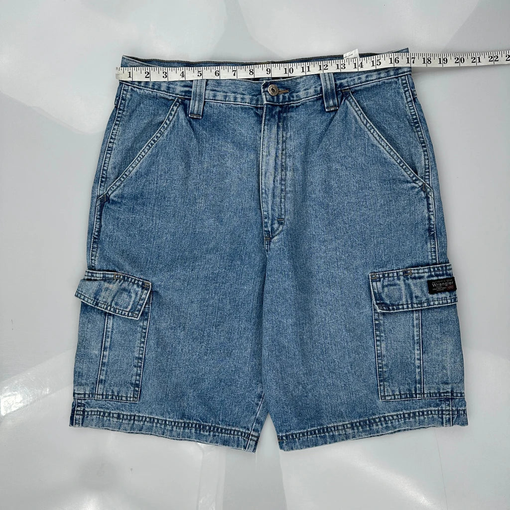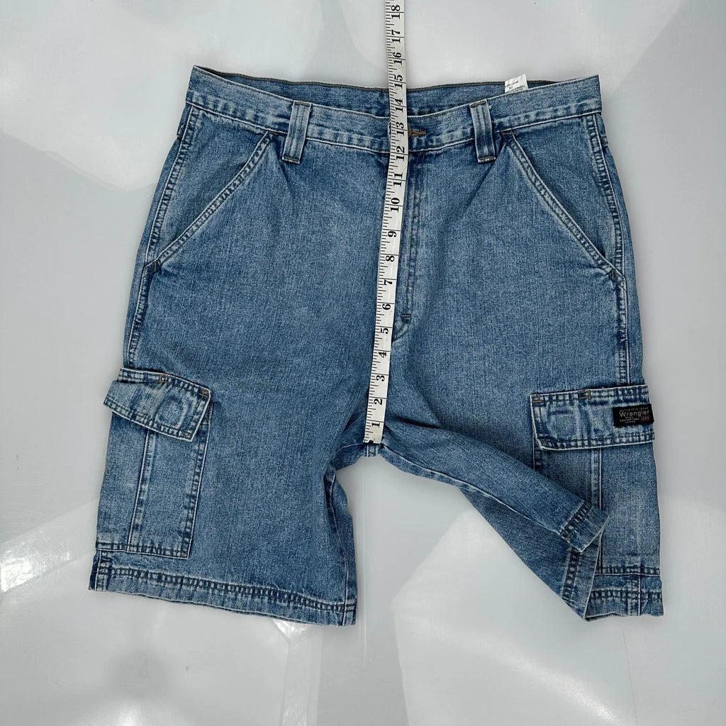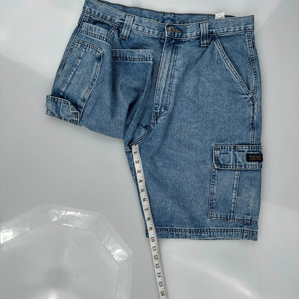 Wrangler Cargo Shorts - 33W 9L Blue Cotton
